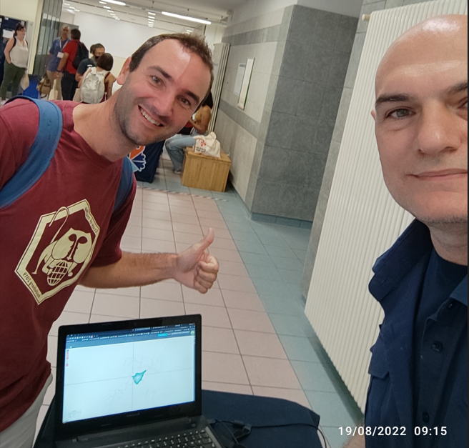 Quando ho fatto la foto con Tim, lui mi ha detto: “Grazie per tutto il lavoro che hai fatto e fai per il repository di QGIS“. Questo mi ha particolarmente emozionato, perché sentirsi riconoscere da Tim il lavoro svolto è molto appagante. Sotto qualche instante prima della foto con Tim: