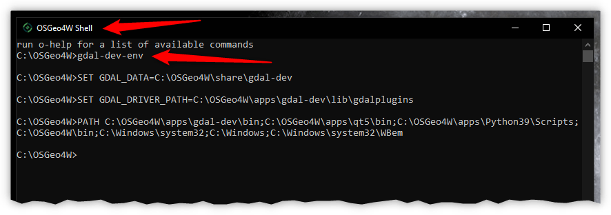 OSGeo4W Network Installer permette di installare anche una Shell da cui lanciare anche GDAL, ma per impostazione predefinita, sono impostate le variabili d’ambiente per il funzionamento degli strumenti della versione GDAL non -dev.