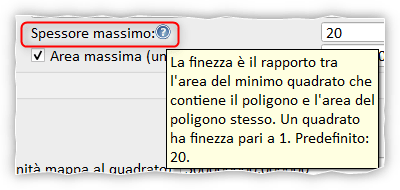 - Spessore massimo (Maximum thinness), valore predefinito 20;