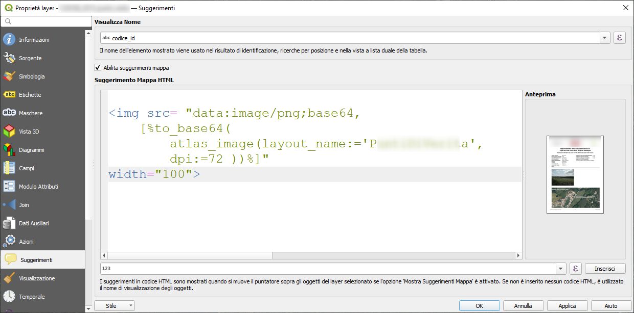 NOTE FINALI: l’espressione creata da Pasotti permette di richiamare una qualsiasi pagina di un atlante e la converte in immagine, quest’ultima è visualizzabile nei suggerimenti mappa oppure può essere riutilizzata dentro un altro atlante.